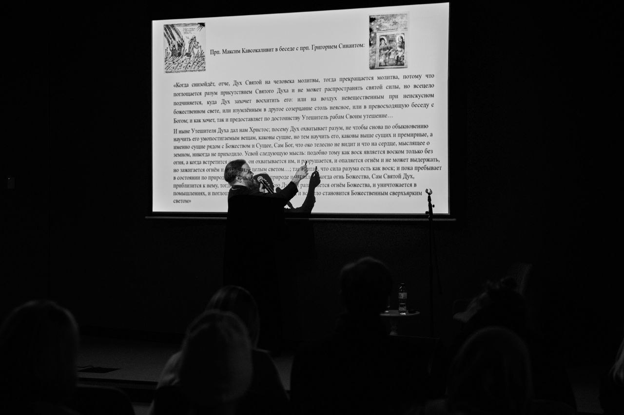 В своей лекции отец Дионисий доступно раскрыл смысл концепции «обожения» как цели человеческой жизни. Слушатели смогли проследить развитие этой фундаментальной идеи через труды святых отцов Церкви.