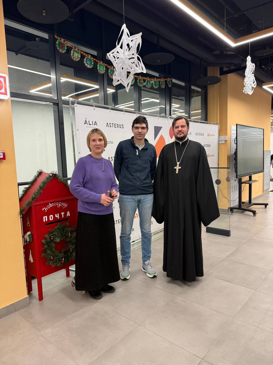 18 декабря 2025 года настоятель храма святого равноапостольного князя Владимира иерей Александр Кузнецов и методист храма Ольга Юрьевна Леонгардт встретились с директором новой физико-математической школы № 58 Дмитрием Александровичем Топешкиным.