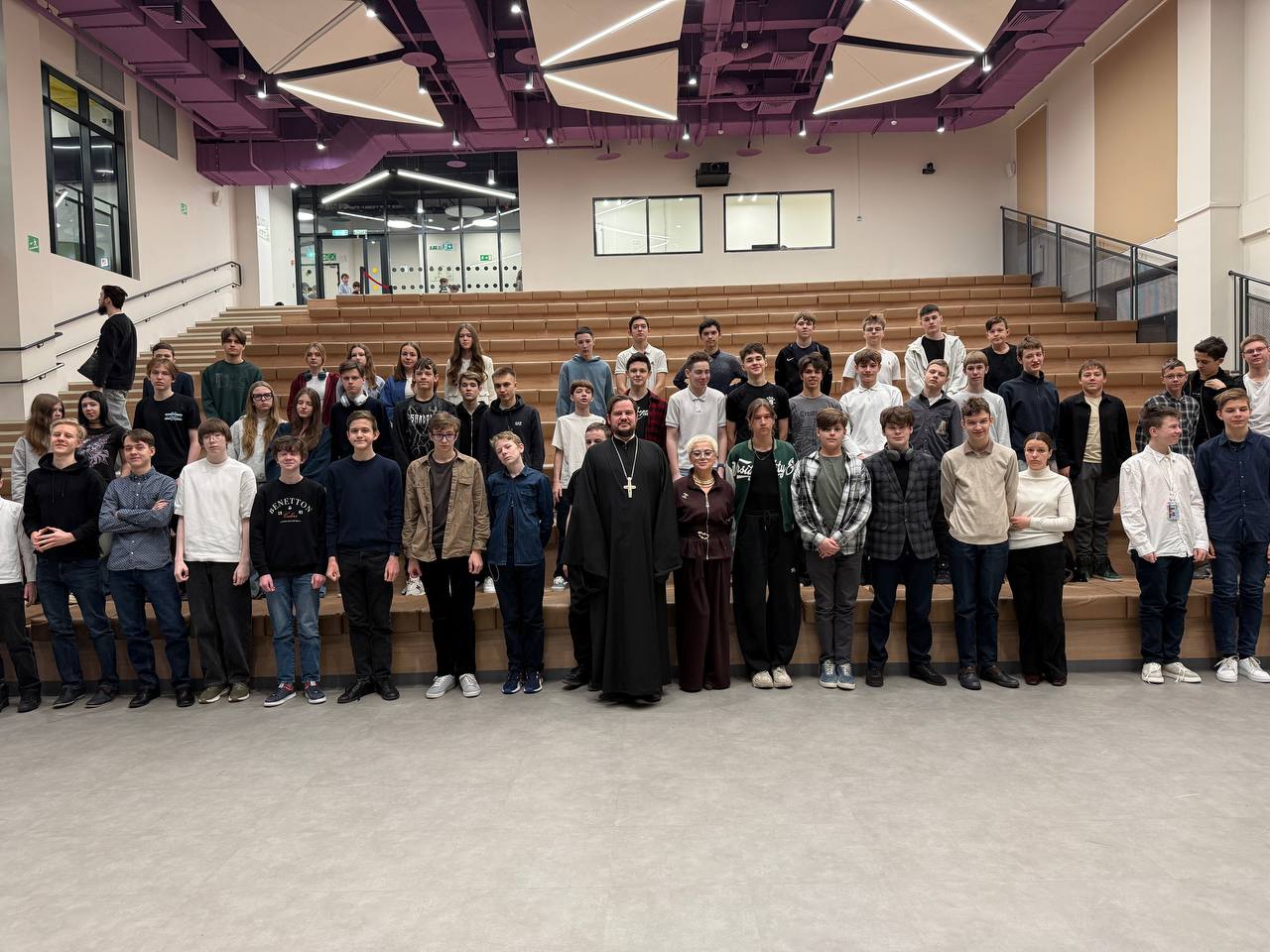 В школе № 58 района Покровское-Стрешнево в рамках цикла «Разговоры о важном» состоялась встреча учащихся 8-10 классов с настоятелем храма святого князя Владимира в Тушине, иереем Александром Кузнецовым.
