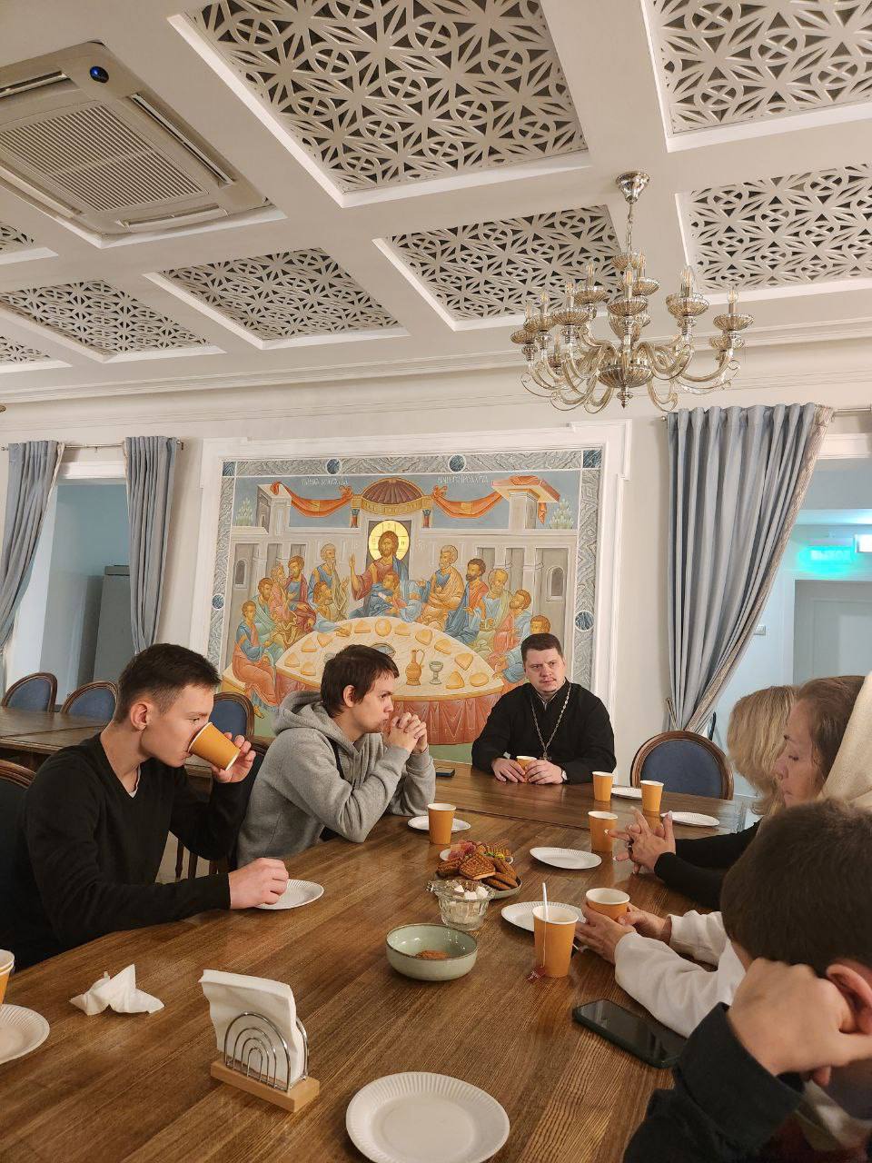 По окончании экскурсии гости прошли в трапезную храма, где вместе пили чай и общались в дружеской обстановке.